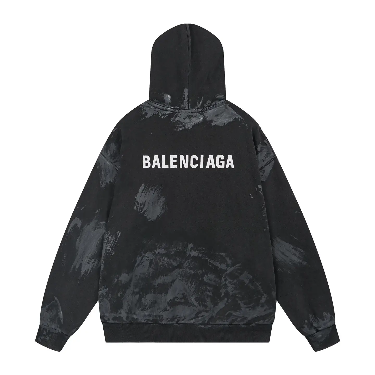 Balenciaga Logo-Embroidered Hoodie in Faded Black Cotton