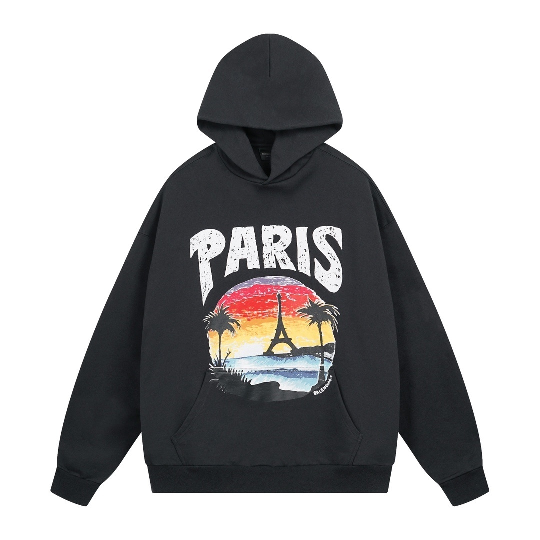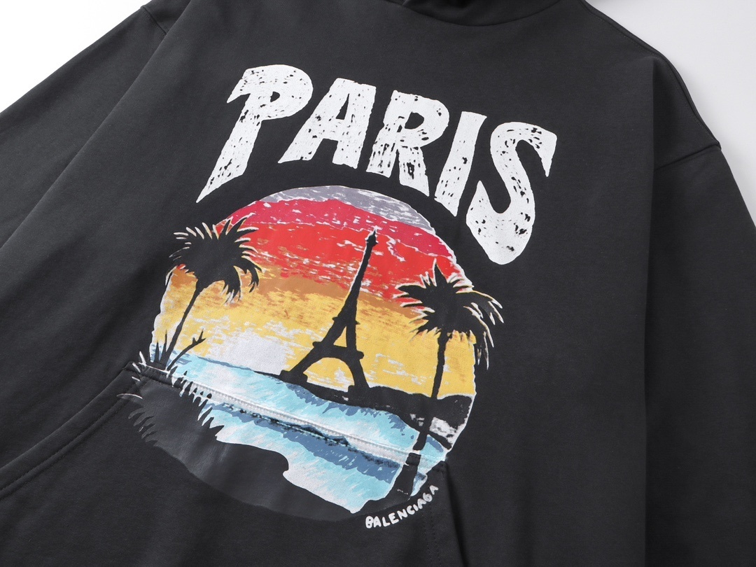 Balenciaga Paris Tropical Cotton Hoodie in Faded Black