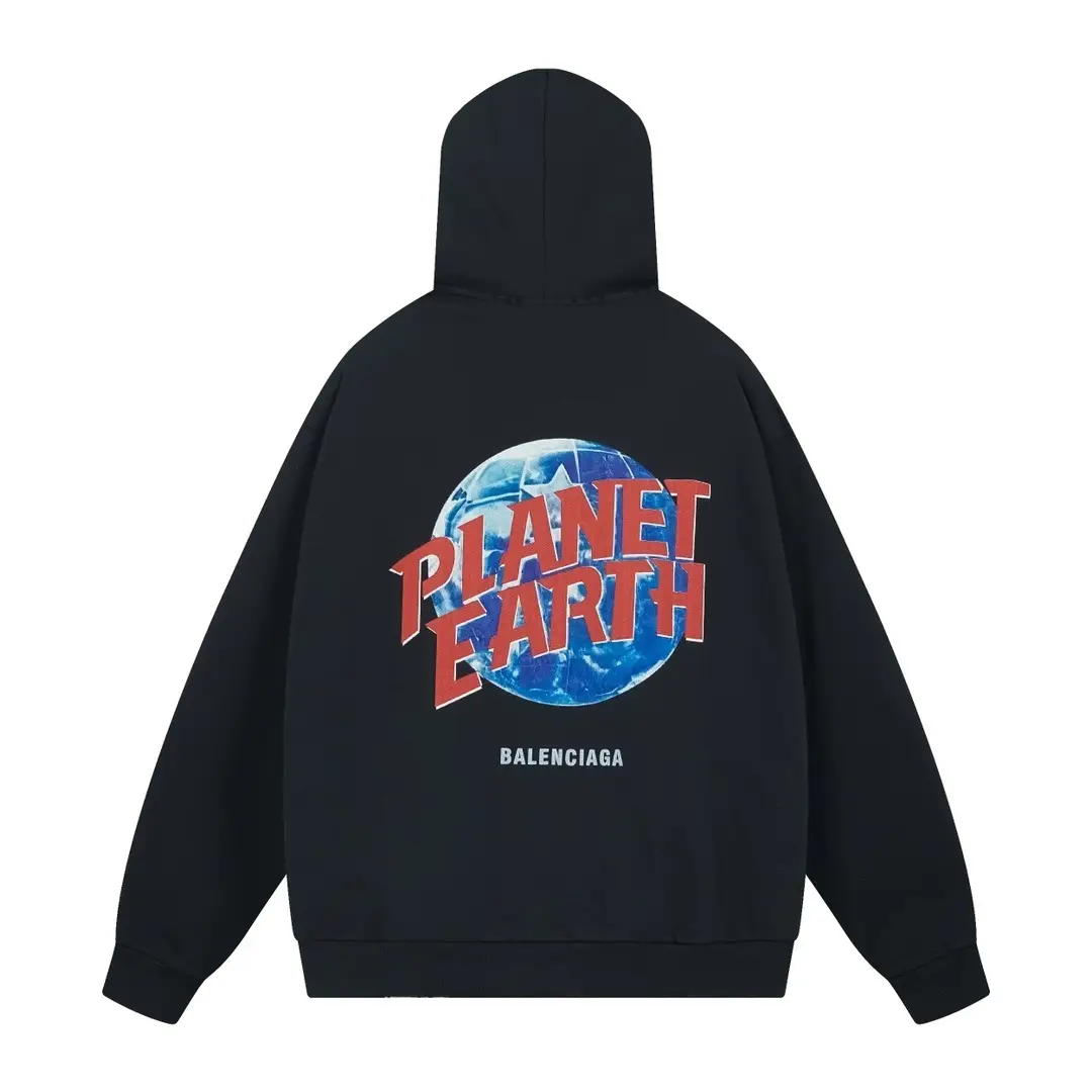 Balenciaga Planet Earth Zip-Up Hoodie in Black