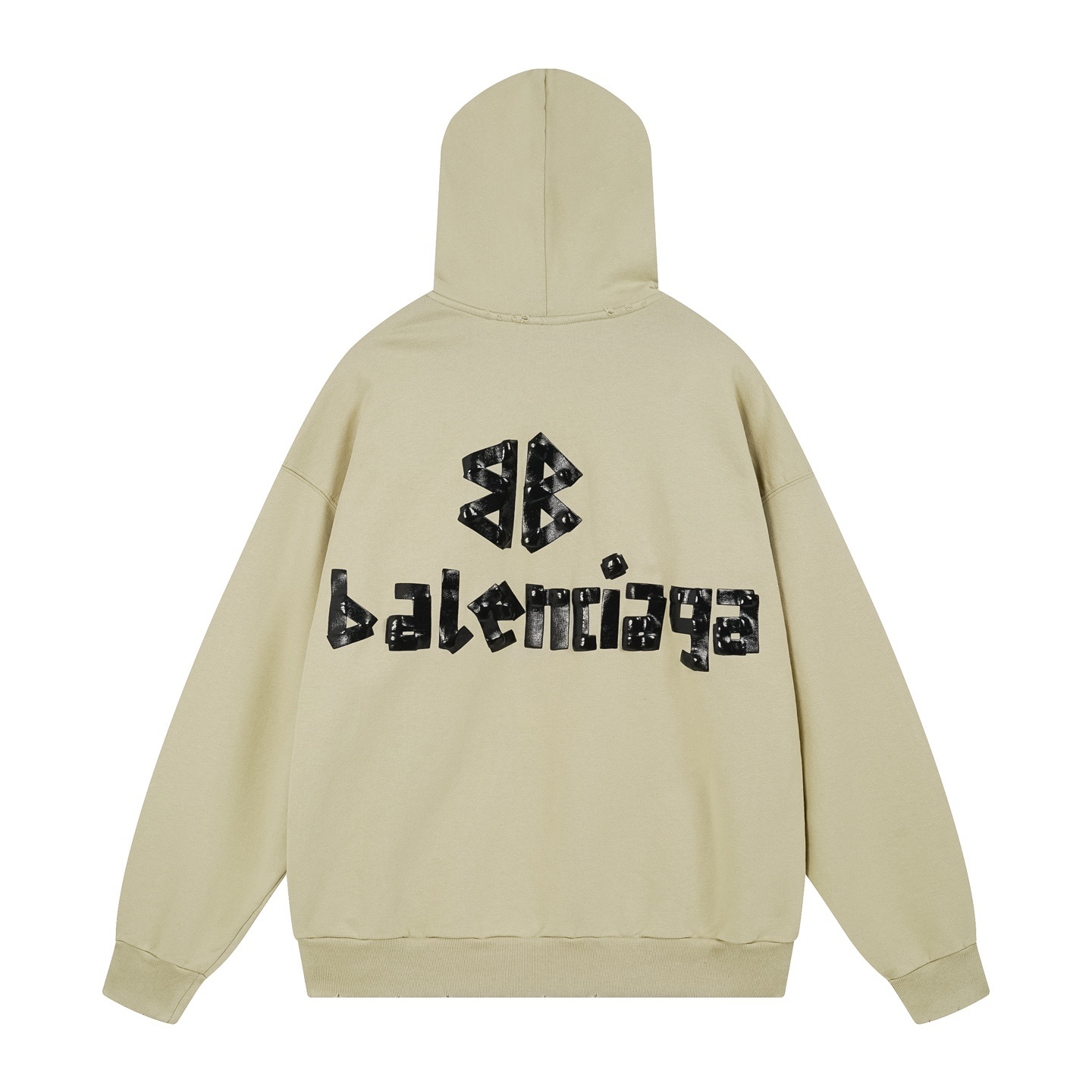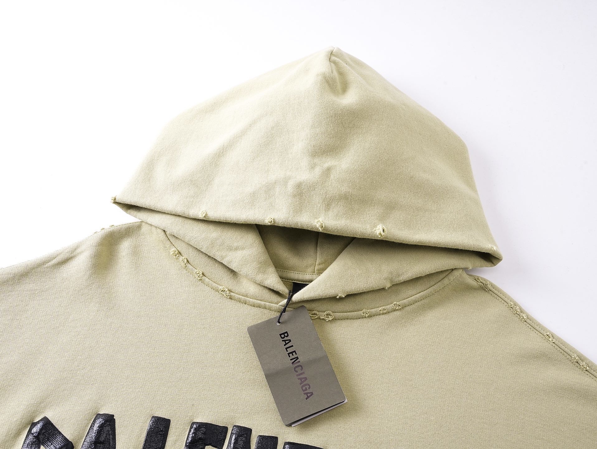 Balenciaga Tape Type Ripped Pocket Hoodie in Beige Curly Fleece