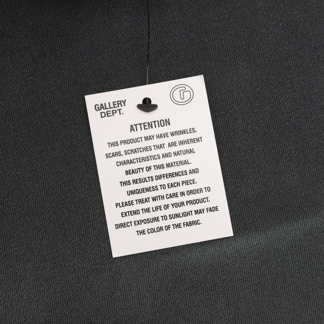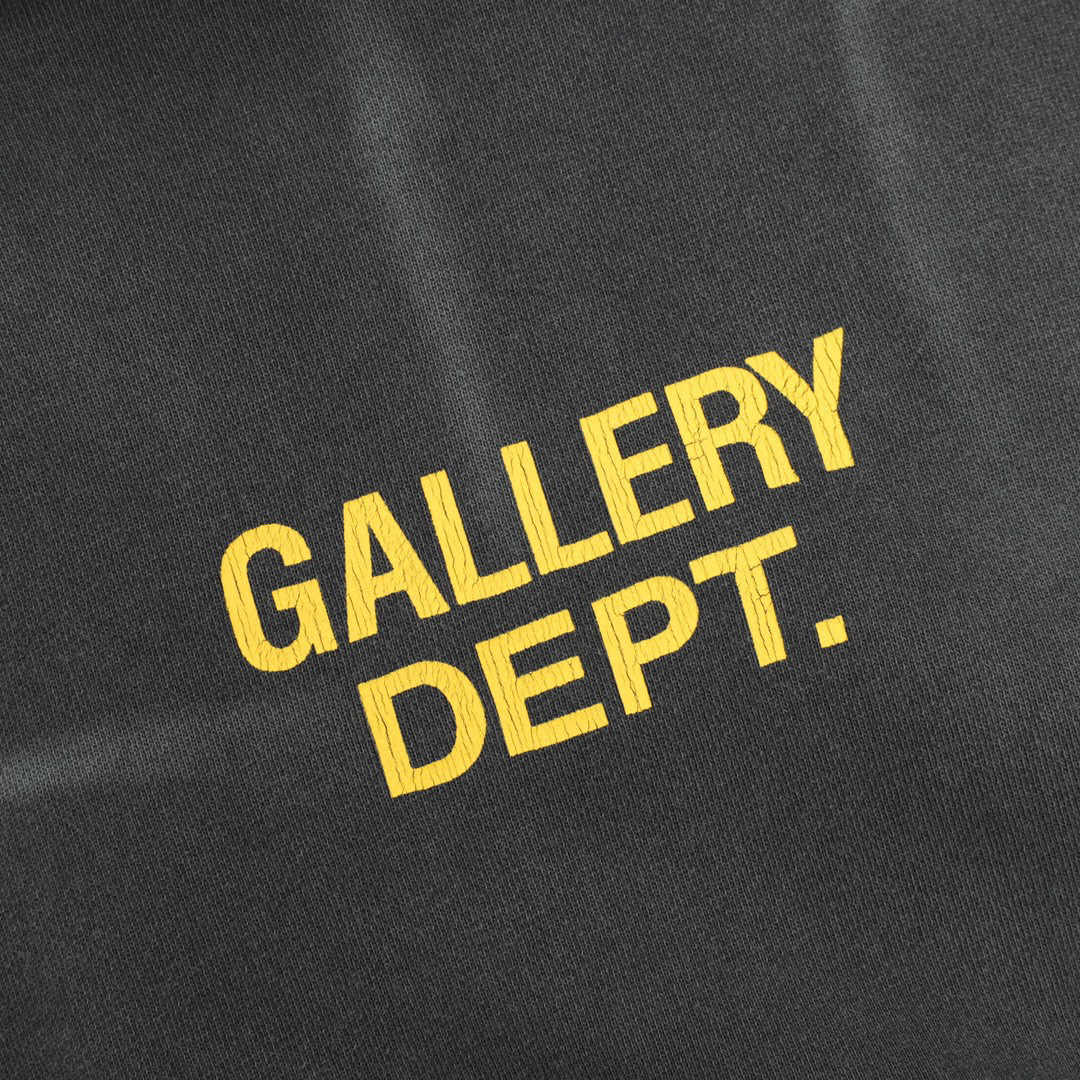 Graphics: Front “GA*LLERY D*EPT.” English-logo screen-print in cracked off-white – engineered to keep splitting with every wash for a one-of-one vintage look; back panel stays clean so the message hits solo from the front.