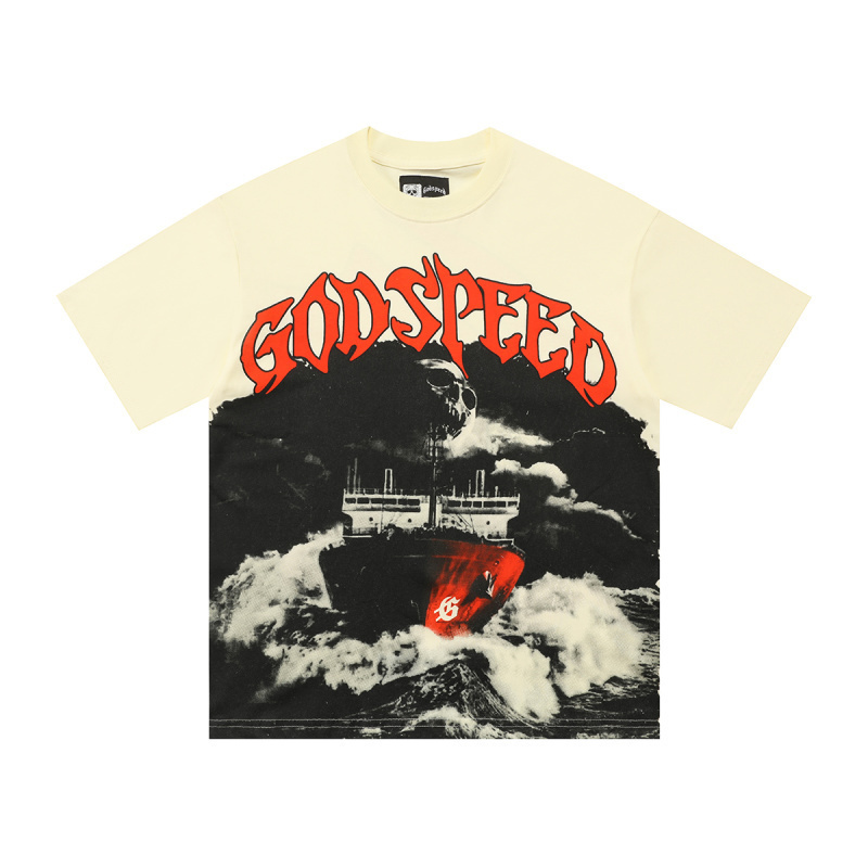 Godspeed New York Skull Ship Graphic T-shirt in Bone
