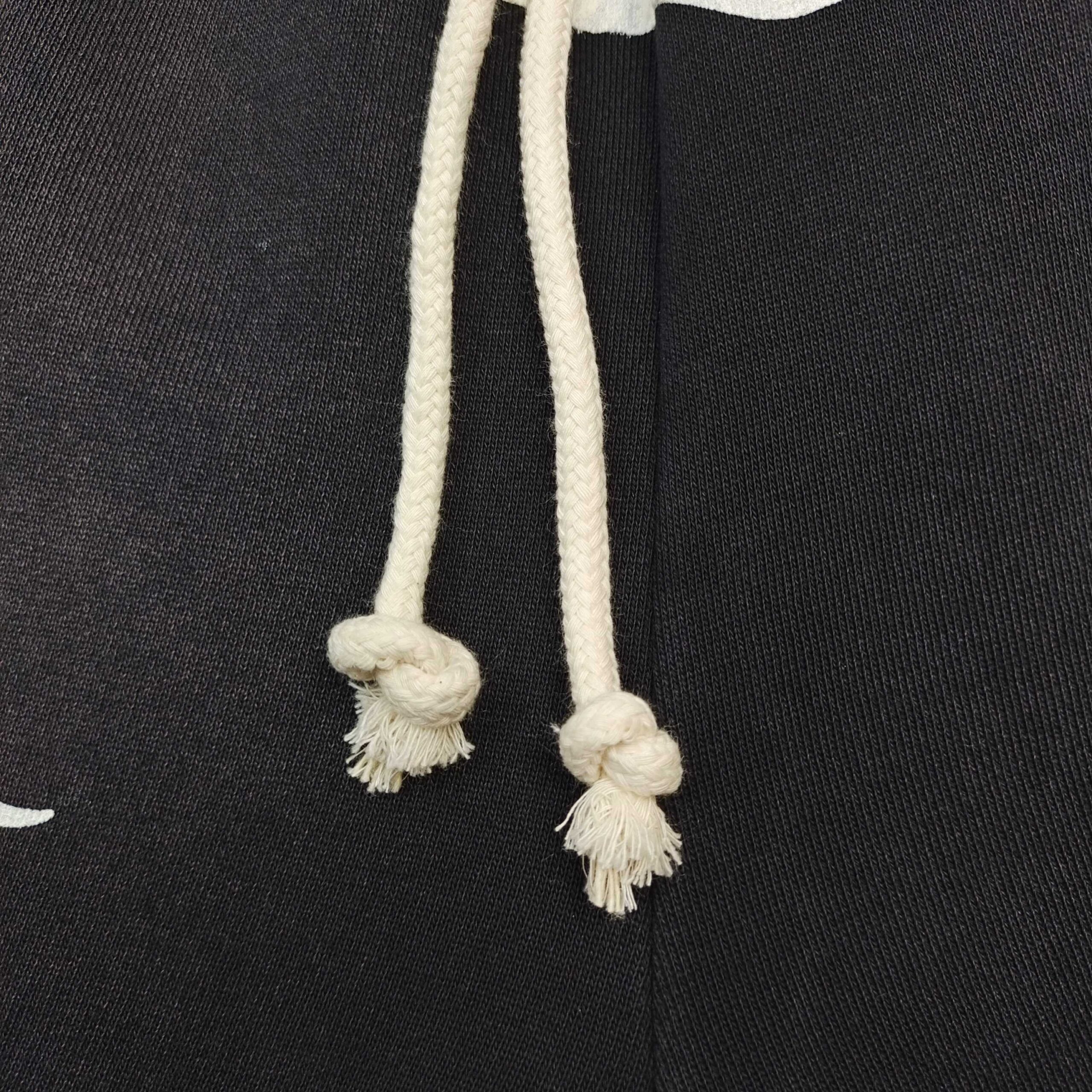 Fabric: Heavy-weight 100 % cotton fleece, brushed inside for softness, garment-washed so the black base fades to charcoal around the seams on day one.