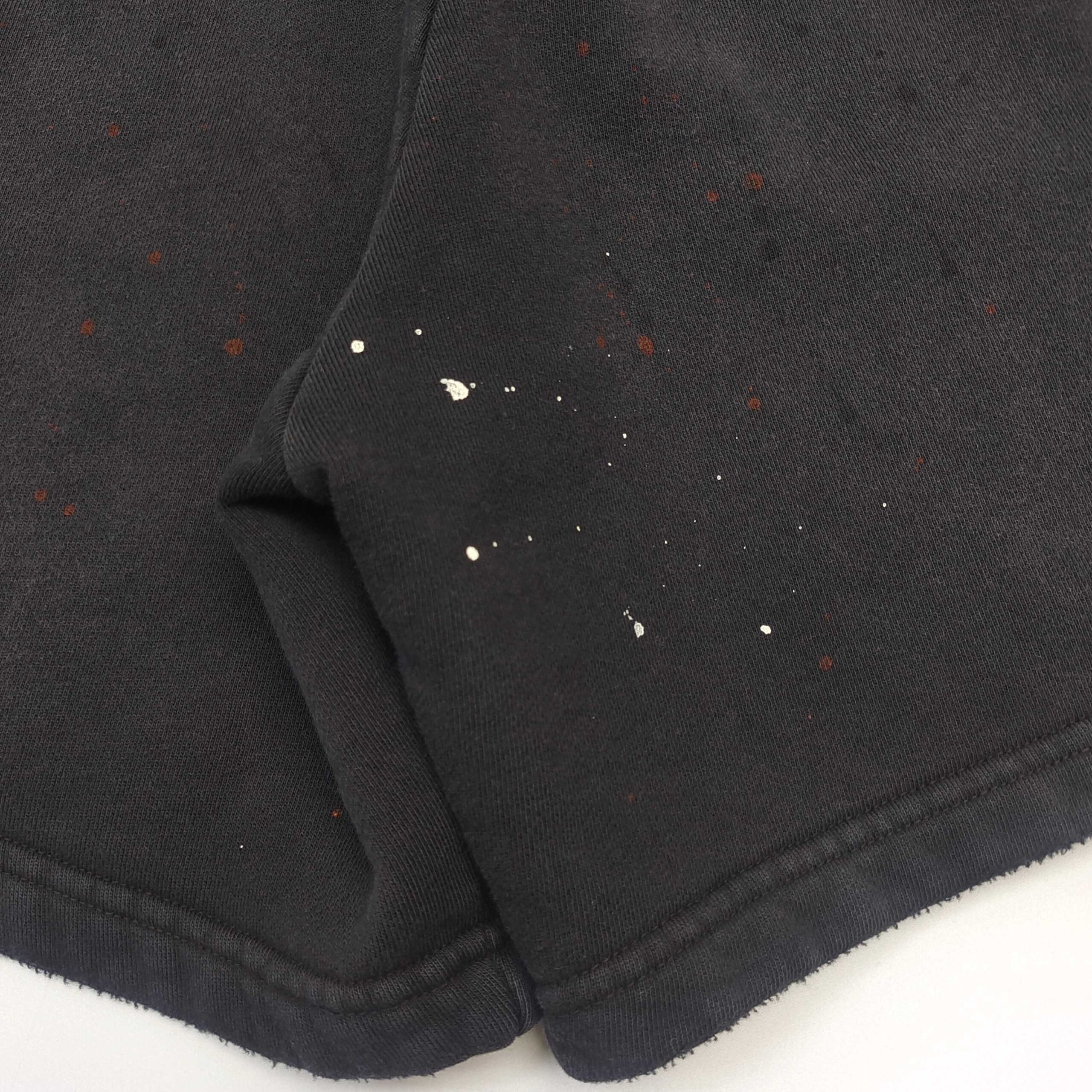 Fabric: Heavy-weight brushed-back cotton fleece, garment-washed so the black base fades to charcoal around seams and pocket edges on day one.