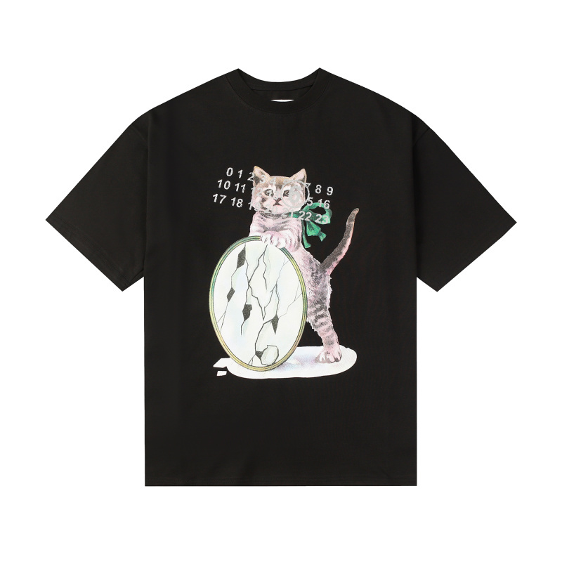 Maison Margiela MM6 Graphic-Print T-shirt with a Cat and Number Logo Print