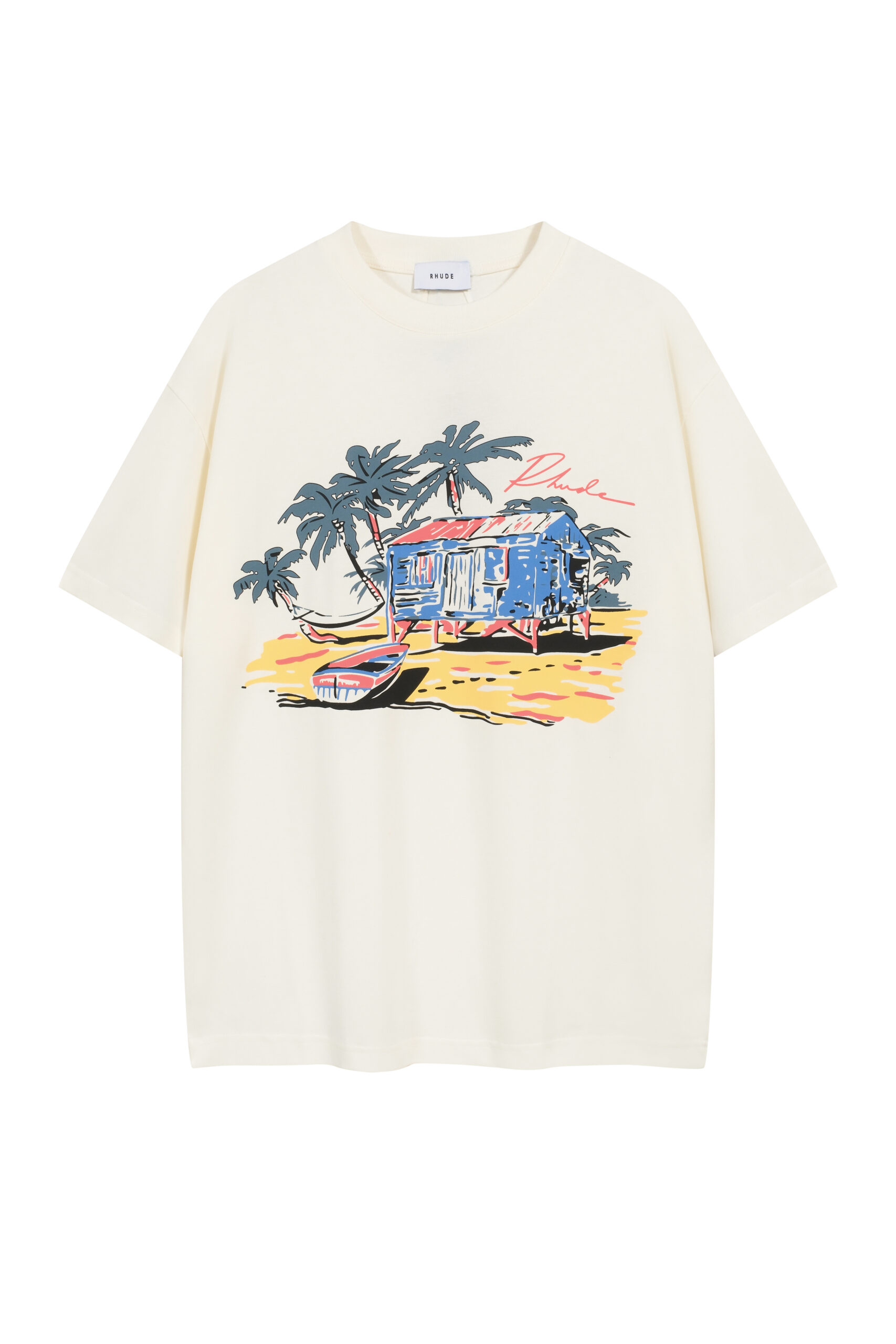 Rhude Beach Side T-shirt in Vintage White with a Beach Graphic Print